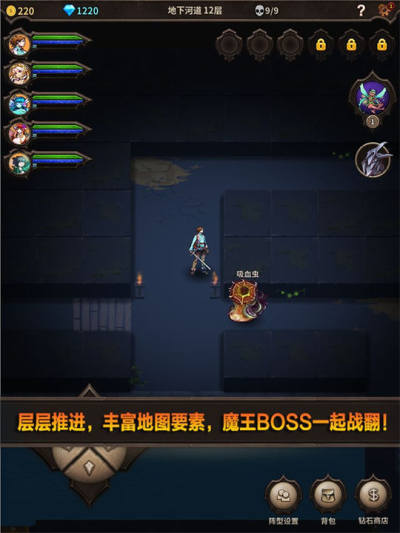 魔窟无尽的地下城内置菜单版是一款暗黑风格roguelike要素的地牢冒险手游,玩家可以收集各种职业定位的英雄角色,在游戏里自由搭配阵容,挑战各种地下城收集随机词条的装备,搭配出丰富战术玩法的套路,上百种小怪和BOSS等玩家们挑战,体验回合制地牢的乐趣吧!