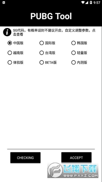 2、进入pubgtool主界面,选择相对于的PUBG版本(中国版所对应的是和平精英)。