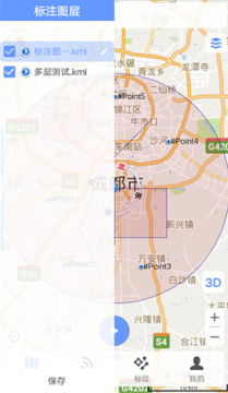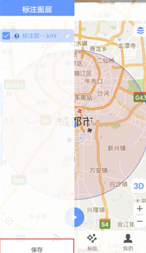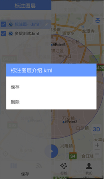 2、在抽屉的底部有一个保存按钮,点击将保存当前选中的kml对象