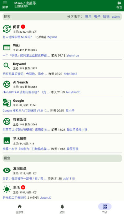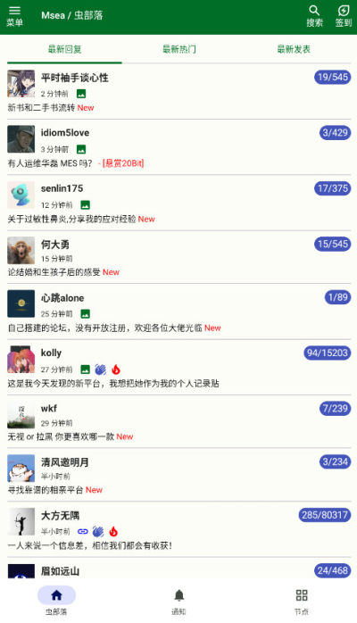 msea虫部落app是一款安卓手机论坛app,软件中有着海量的实用功能等你体验,用户可以随时随地打开进行体验,选择自己感兴趣的话题加入,不占用手机内存,使用起来非常方便,对软件感兴趣的话不妨点击下载试试!