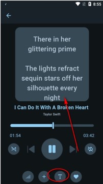 4、点击下方的t可以查看播放的歌词。