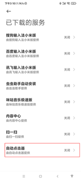 5、找到“自动点击器”,也是默认关闭的,需要开启;
