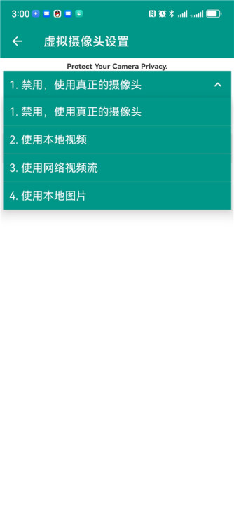 1、点击vcamera虚拟直播助手app右上角的三个点,选择虚拟摄像头设置;