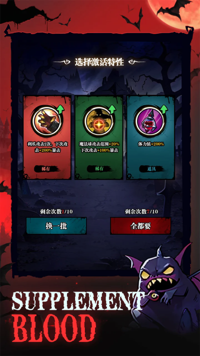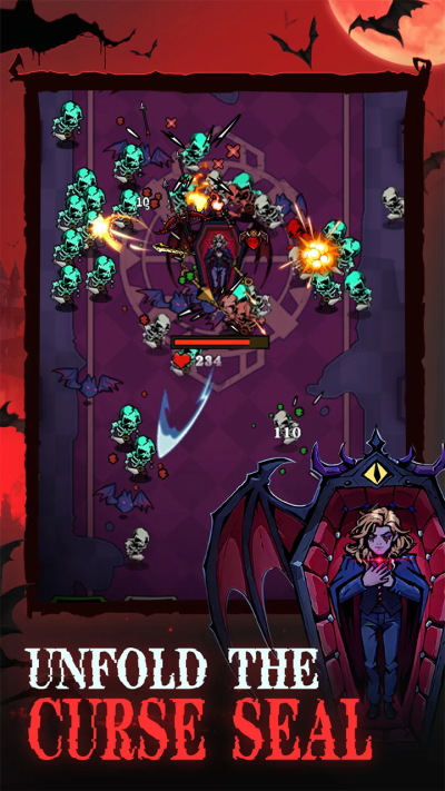 玩家需要在游戏中控制各种吸血鬼,收集敌人掉落的装备等奖励,获取并升级自己,努力生存 30 分钟。攻击是完全自动的。