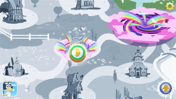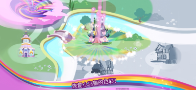 1、色彩丰富的冒险:游戏的背景设定在一个被失色魔咒笼罩的小马镇,玩家需要帮助小马们恢复世界的色彩,这个设定为游戏增添了奇幻色彩。