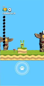 1、进入游戏后点击开始开始游玩,游戏的玩法是很容易理解的,就是操控小怪物把握好时机然后不停地跳跃到更高一级的方块上;