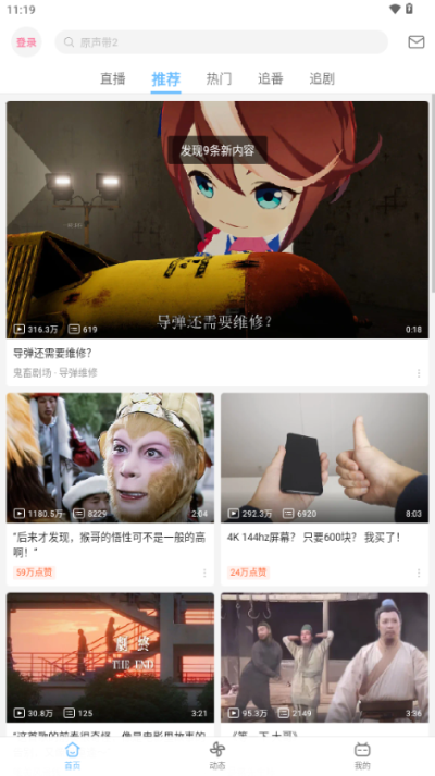1.页面简洁,没有广告,推荐的视频更具备二次元特性。