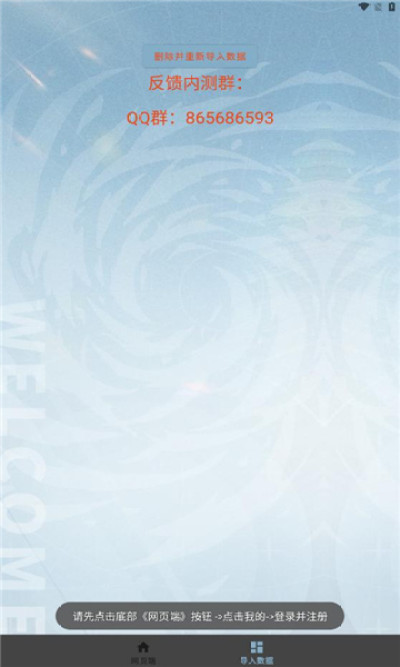 2、注册账号完成后,点击底部按钮-导入数据,新的页面会出现一个登录界面,滑动页面,选择登录方式,点击后会出现一个二维码;