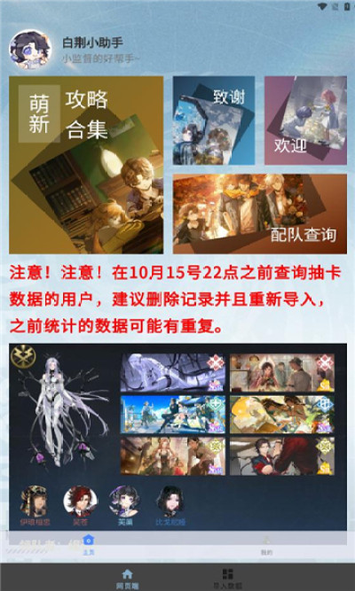 白荆小助手app是一款由白荆回廊手游衍生出的手机辅助软件,软件界面简洁直观,所有功能一目了然,用户可以在线查看游戏最新数据内容以及游戏官方资讯内容,对软件感兴趣的话不妨点击下载试试!
