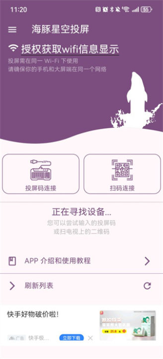 海豚星空投屏app还支持使用手机作为遥控器来控制大屏幕上的内容。用户只需在手机上轻轻一点,就能完成播放、暂停、快进、快退等操作,无需再寻找专门的遥控器。这种智能控制方式不仅简化了操作流程,还提升了用户的使用体验。