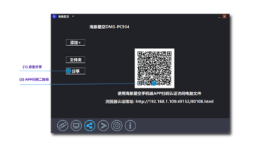 手机app扫码电脑发送端的分享维码后,选择电脑的DMS,就可以像控制本地媒体资源一样投射电脑上的照片,音乐,视频到接收端上。
