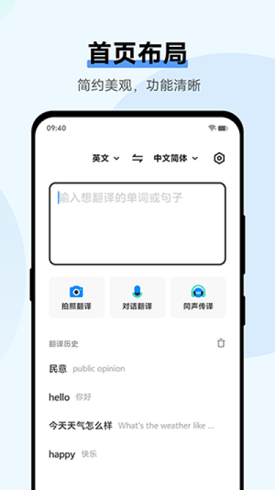 便捷操作:应用界面简洁明了,操作流畅,用户可以根据自身需求轻松切换翻译语言,调整翻译设置。同时,它还支持一键复制翻译结果,方便用户直接粘贴到聊天工具或其他应用中使用。