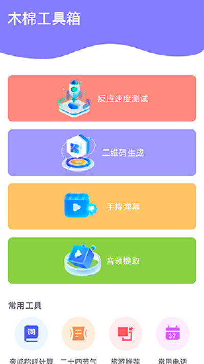 多样实用工具集:木棉工具箱APP汇集了反应速度测试、二维码生成、手持弹幕等多样工具,满足您从娱乐到工作的全方位需求。