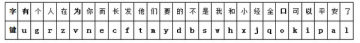 字组字输入法指定以下26个常用汉字,除了可以用常规的输入方法输入外,还为这26个常用字额外并行提供了通过输入1个字母加空格的快捷输入方式: