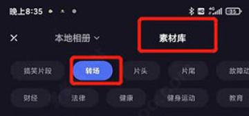 2、跳转的页面点击素材库 ,点击转场