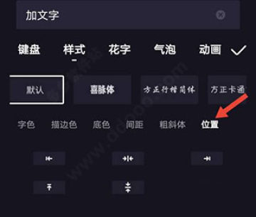 5、点击【位置】,可以把文字调整到视频画面适合的位置上。在度加剪辑中添加好文字后,点击导出视频就可以了