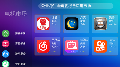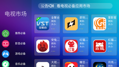 专为电视用户设计:电视市场APP是专门为智能电视用户打造的应用市场,提供了丰富的应用和游戏选择。