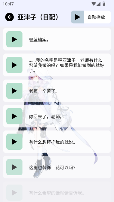 2.语音的来源是蔚蓝档案wiki,之后会不断更新。