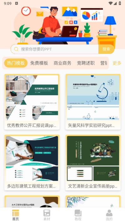 高质量模板:汇聚大量高质量的PPT模板,涵盖商业办公、幼儿教育、展会培训、招聘求职、述职报告等多个行业和主题,确保用户能够快速制作出专业且美观的PPT。