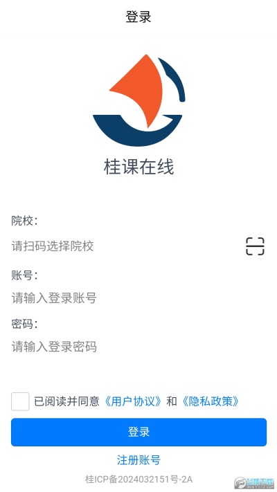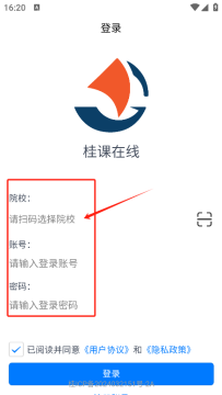 2、进入后这里我们统一桂课在线app的用户协议