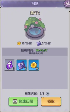 6、体力扫荡。体力记得通关扫荡,定期上线领取挂机奖励,不要让体力溢出了;