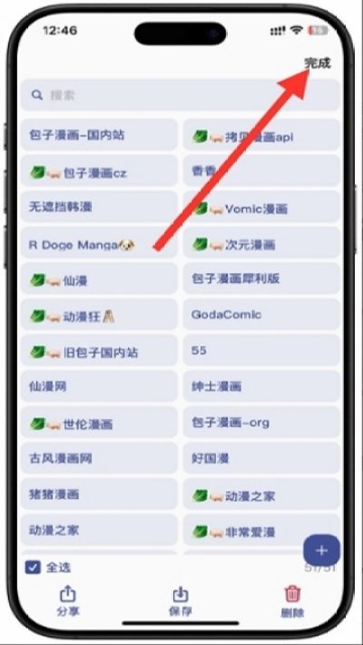 5.在解析出来的漫画源中进行勾选,点击下方【覆盖/添加】;