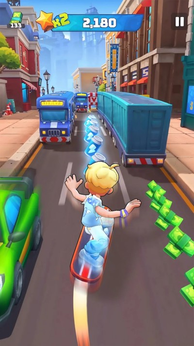 游戏中你将是他们其中一名超级跑者,在城市中穿梭,奔跑,跳跃、滑行和躲避障碍物,收集货币,升级你的专属技能,解锁超级跑者团体,追捕邪恶的犯罪集团,保护我们的家园不被破坏。