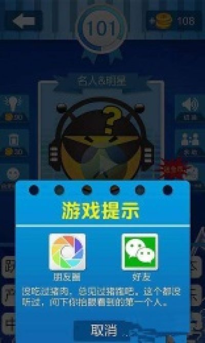 答案提示可能是动漫人物或明星或名人等,用户可微信求助于他的好友!