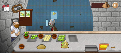 3、玩家需要不断地做食物,以便可以将僵尸客人送走,一旦食物停止,闯关就会失败。