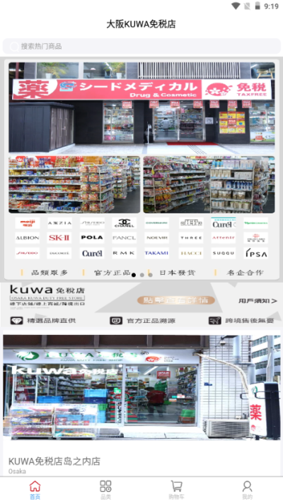 1、下载KUWA免税店APP,进入首页即可浏览琳琅满目的海外商品。