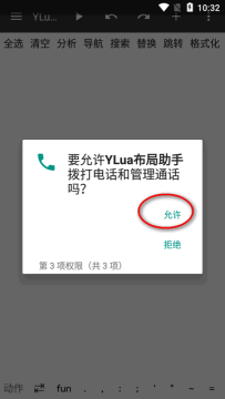 1.打开YLua布局助手app,初次进入,允许3个权限;
