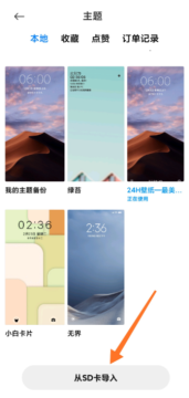 在群文件中下载mtz文件包,打开主题商店,选择“从SD卡导入”