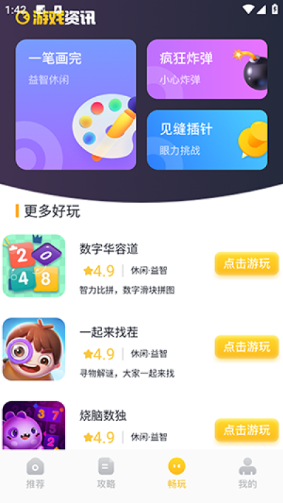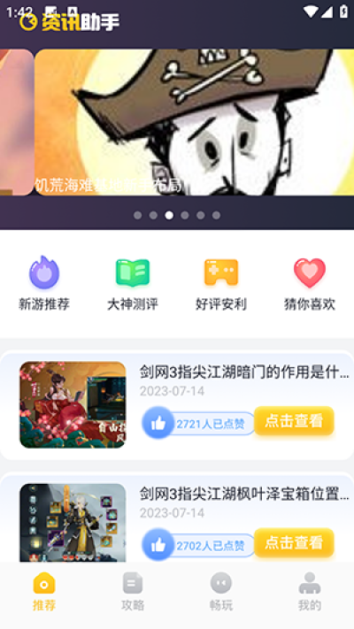 戏游助手APP一款专为游戏玩家设计的多功能辅助软件,汇集海量游戏攻略,从新手入门到高手进阶,还提供个性化推荐,根据你的游戏偏好,智能推送相关内容,里面有大量游戏资讯和游戏攻略,还有众多小游戏等你来玩。