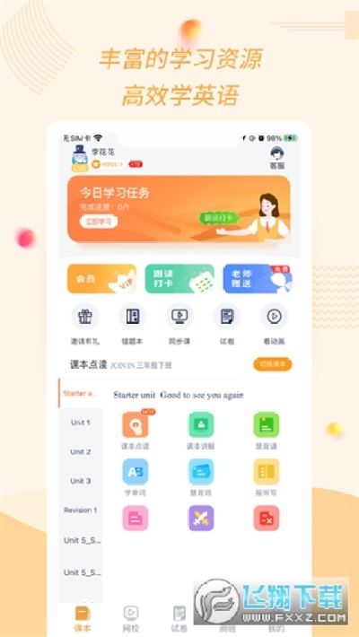 【单词卡片】:涵盖所有小学单词,提供我来读、我来拼,听说读写全方位学习单词;