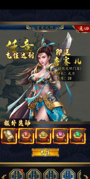 ★福利4:首充即送超级光环门客唐赛儿!武力推图比拼首选!
