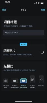 4、在这里可以选择项目的标题、或者是设置动画照片以及进行格式的选择,完成之后选择“创建”即可。