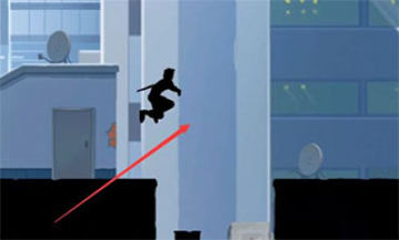 6、然后跳刀墩上再起跳,去到前面那个人那段路,大概到那块公告牌的位置,向下划一下屏幕去到这关的第二个隐藏场景