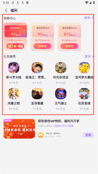 6、在福利页面,为大家提供了优惠券、礼包等福利