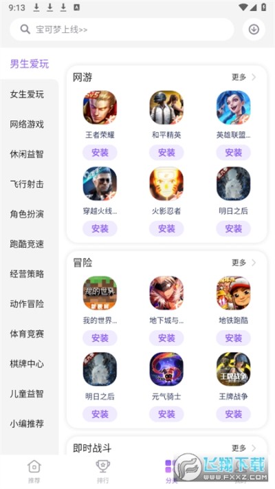 5、点击分类,大家可以根据游戏的分类来选择想玩的游戏