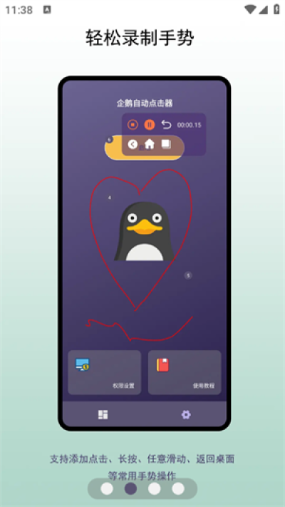 若你频繁进行手机上的重复操作,企鹅自动点击器app将是你的一大帮手。利用这款app,用户可以自定义自动点击的各项参数,包括时长、次数及频率,以满足不同的点击需求。软件内置详尽的新手教程及功能解说,助你轻松上手,彻底解放双手,告别重复操作带来的单调与疲惫。