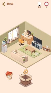 1、游戏开始时,玩家会获得一批打包好的家具。玩家的任务是将这些家具逐个拆开,放置在房间中的合适位置。每件家具都有指定的房间和位置,玩家需要按照提示进行摆放。