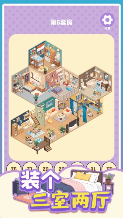 装个三室两厅免广告版是一款房屋装扮的休闲益智手游,游戏里玩家可以将各种打包的家具合理的放置,根据自己的喜好的装扮小屋,自由DIY自己的卧室和客厅来搭配不同风格和颜色,升级自己的装备获取更高的分数,通过社交功能还可以分享自己的房间,小伙伴们不要错过!