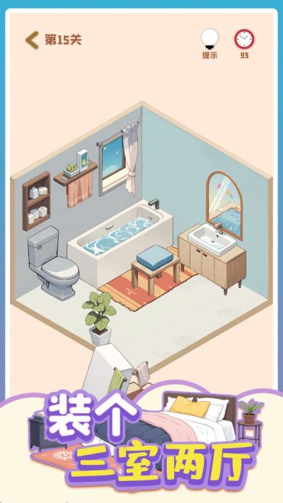 2、游戏自由度高,玩家可以自由装扮自己的房间,包括客厅、卧室、厨房和浴室等。通过选择不同的家具风格和颜色搭配,玩家可以打造出独特的居住空间。
