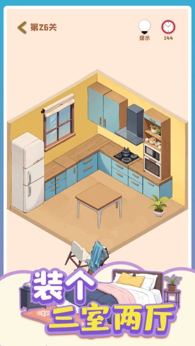 这是一款装扮房间的休闲游戏,游戏中需要玩家把打包好的家具放到房间中,装扮自己的小屋,精心收纳客厅和卧室,快来挑战一下吧。