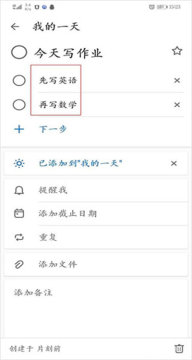 5.添加好以后,返回我的一天,可以看到提示信息已经显示此任务有2步。
