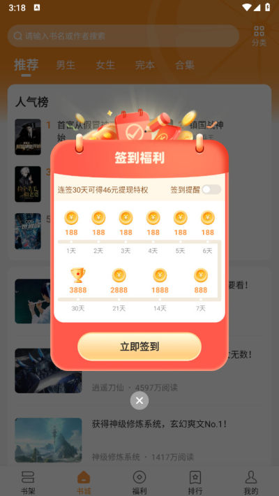 3、每天软件都会第一时间为用户们更新最新最热门的小说章节,让用户们不再等待更新快速阅读。