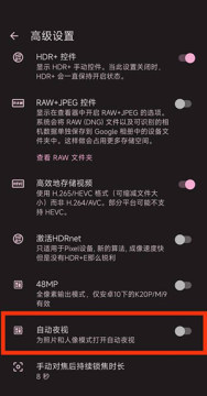 3、随后我们就可查看到谷歌相机中的自动夜视该选项了