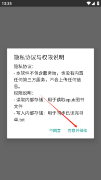 2、进入软件以后我们需要点击同意隐私协议和权限说明;
