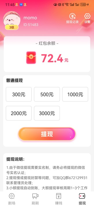 4、平台支持微信提现,登录的时候记得用常用微信账户哦!