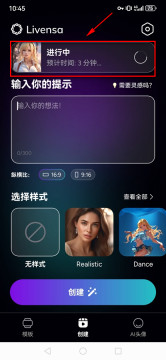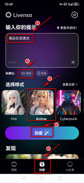 点击【创建】栏目,输入关键字,选择纵横比、选择样式,然后点击【创建】